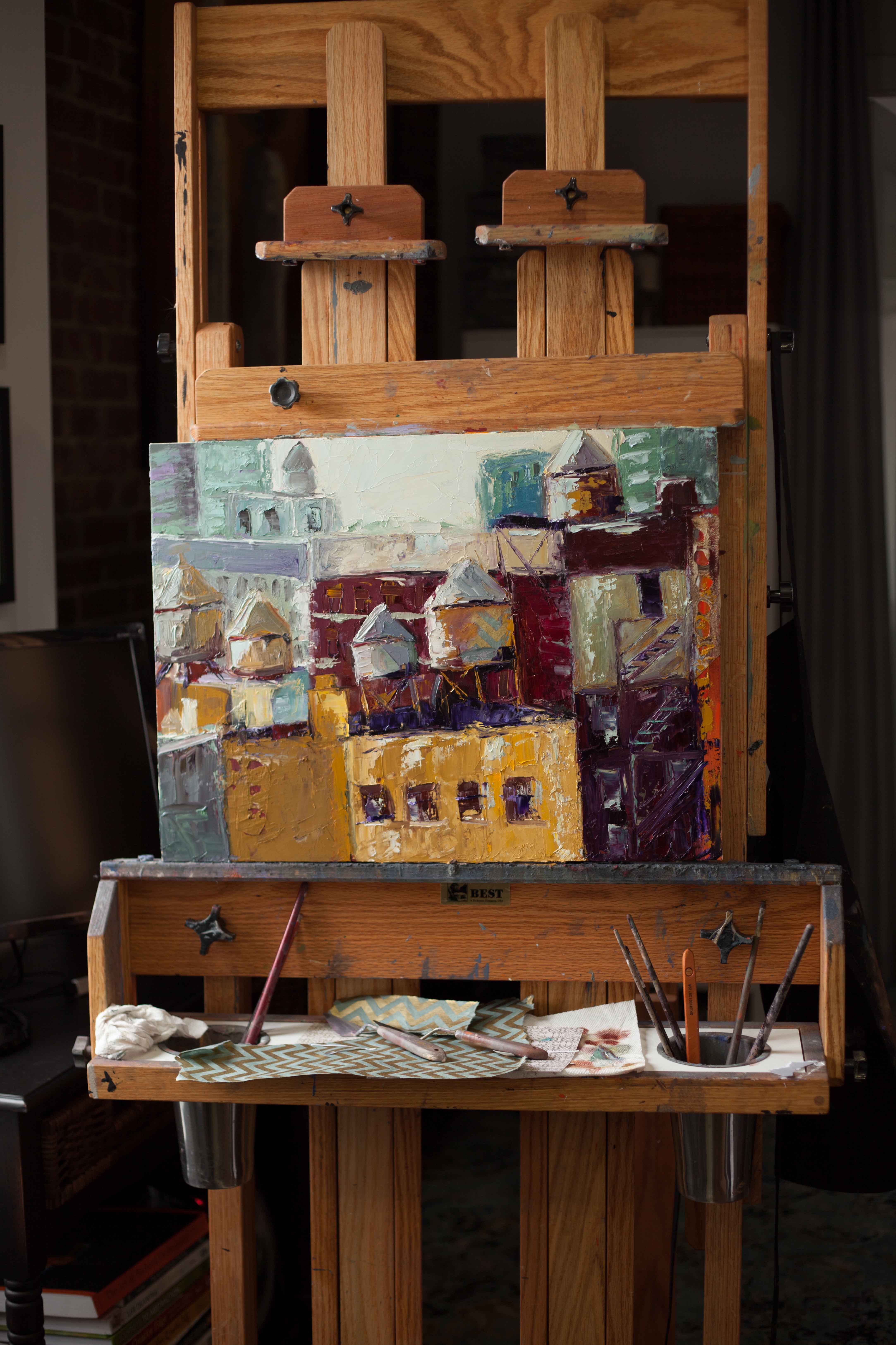 Speaking of finding my footing, I’m adjusting to my tiny little studio space that’s right in the middle of the apartment. I’ve been working out the kinks and trying to carve out my little world with the guys moving around me. I felt a huge victory getting this painting finished today.  I really need to regain my momentum and get more work done. One step at a time!